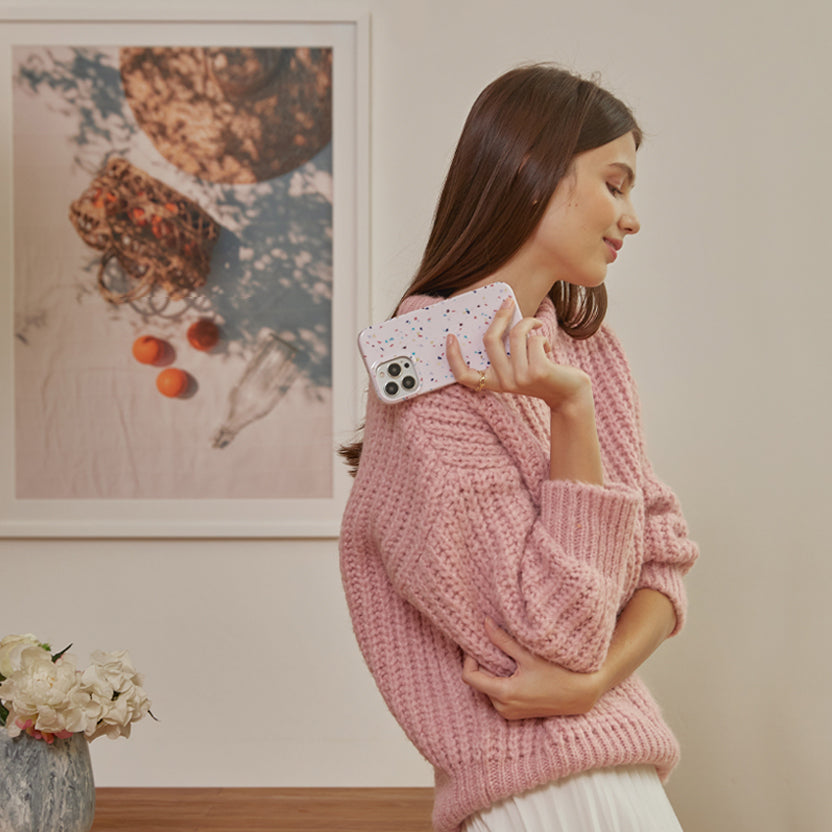 Stay classy with the timeless Terrazzo. Putting a modern twist to the well-loved 15th century Venetian pattern, this slim hard iPhone case is a trendy blend of luxury and taste with golden details that reflect the light — so you’ll never go out of style. Choose from two classic pastel shades in white and pink.