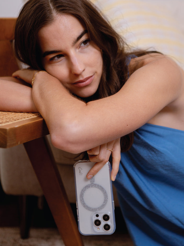 Let your sparkle shine through – with no apologies. Turn heads with this bold display of charming clarity adorned with a ring of shimmery glitter and make every moment yours.